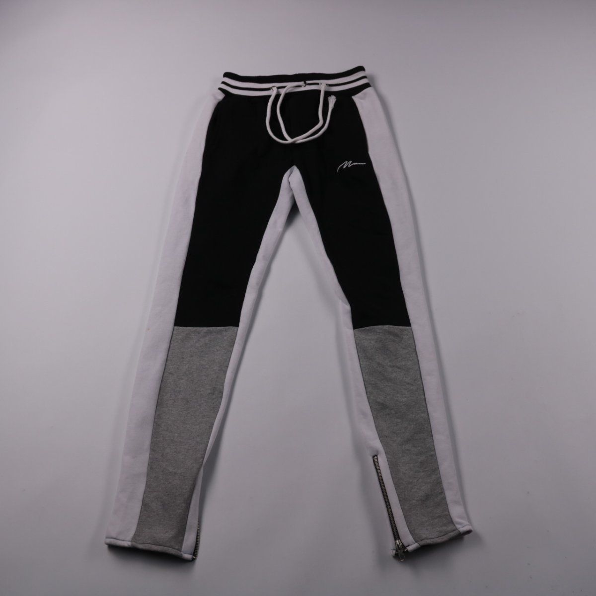 Спортивные брюки BoohooMAN с контрастными вставками и шнурком на поясе. Подойдут для повседневной носки и тренировок в зале или на улице. Молнии снизу помогают удобно надевать и регулировать посадку по щиколотке.