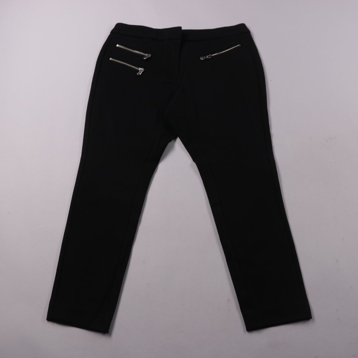 Женские чёрные брюки M&S прямого кроя с декоративными молниями спереди и укороченной длиной (Short). Подойдут для офиса и повседневных образов, легко сочетаются с рубашками и трикотажем. Ткань с добавлением эластана немного тянется и комфортна в носке.