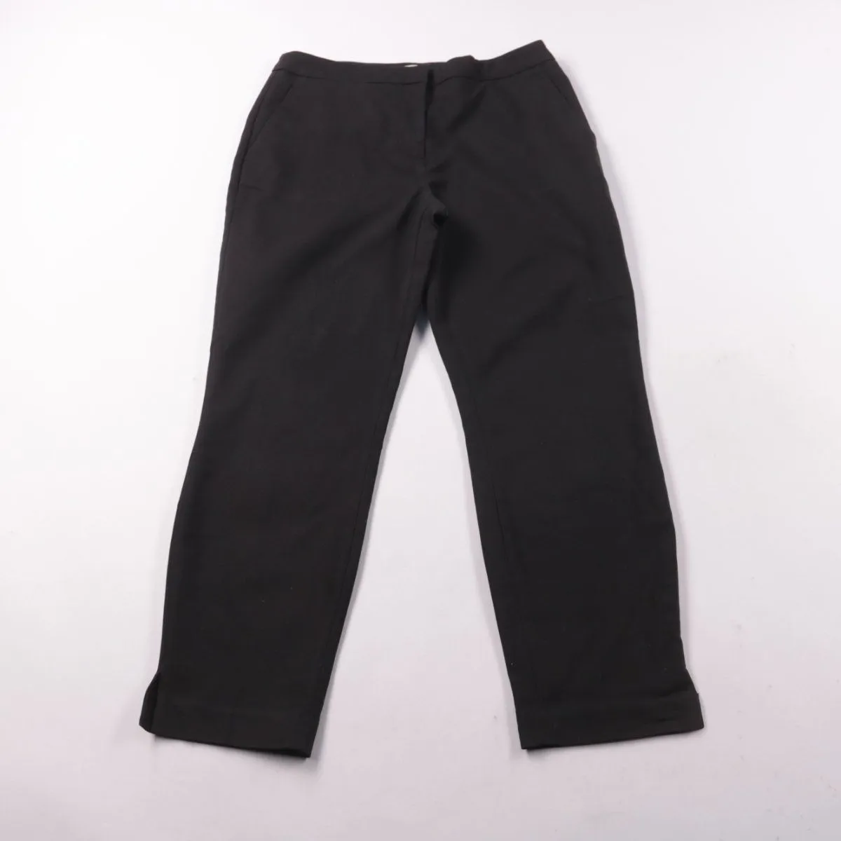 Черные женские брюки H&M прямого кроя с отворотами по низу. Подойдут для офиса и повседневных образов, легко сочетаются с базовыми вещами. Ткань с эластаном даёт небольшой комфорт по посадке и движению.