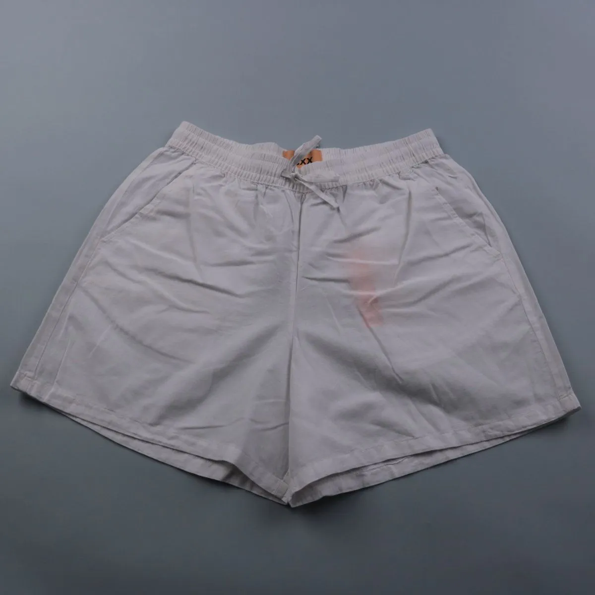 Шорты JJXX из хлопково-льняной ткани с эластичным поясом и шнурком, цвет белый. Подойдут для повседневных летних образов и отдыха. Практичны тем, что пояс регулируется шнурком и удобно садится по талии.