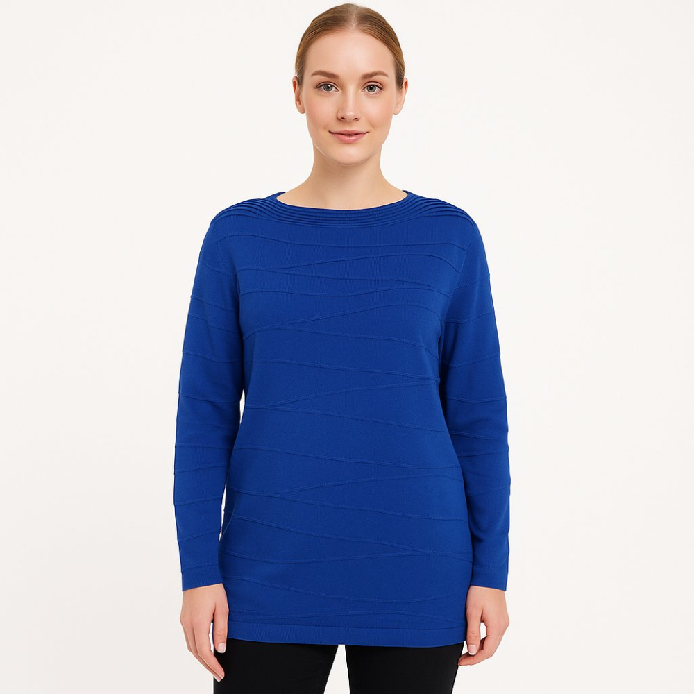 Женский джемпер Dillera насыщенного синего цвета с фактурной вязкой и длинным рукавом. Подойдёт для офиса и повседневных образов в прохладную погоду, хорошо сочетается с джинсами и классическими брюками. Вискоза в составе делает его мягким и комфортным...