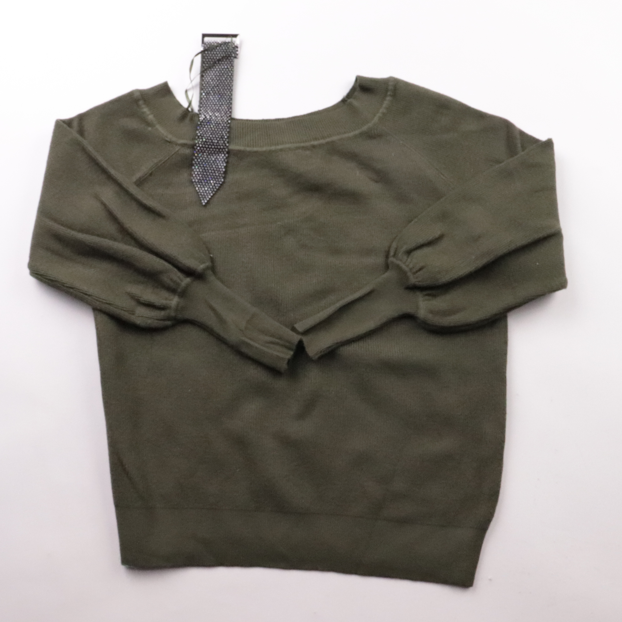 Джемпер Moëwy цвета хаки с круглым вырезом и манжетами на рукавах. Подойдёт для повседневных образов в прохладную погоду, хорошо сочетается с джинсами и брюками. Смесь вискозы с полиэстером и полиамидом приятна к телу и проще в уходе.