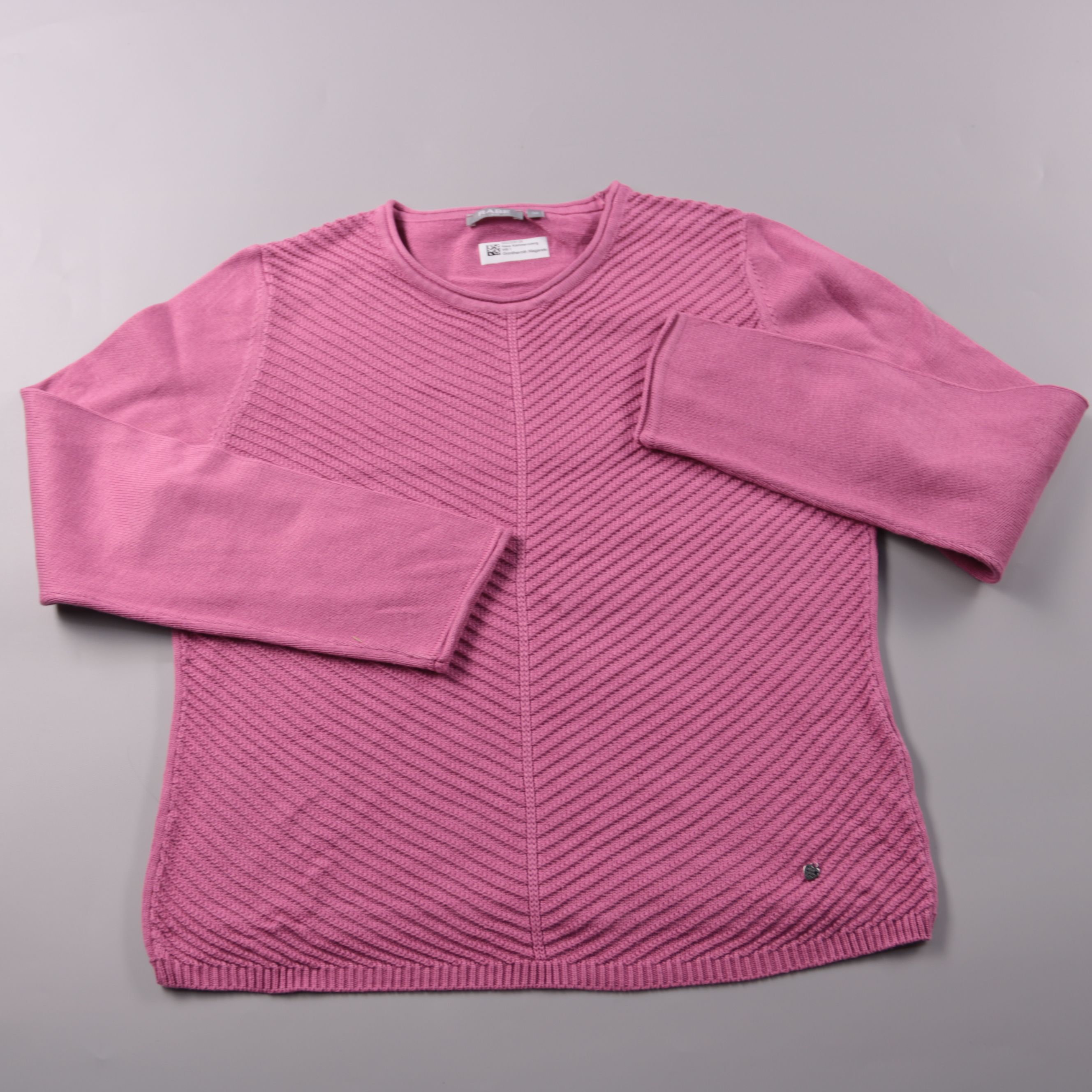 Женский джемпер Rabe розового цвета с круглым вырезом и длинным рукавом. Фактурная вязка с диагональным узором делает модель заметной и подходит для повседневных образов в прохладную погоду. Мягкий трикотаж комфортно носится и хорошо сочетается с джинс...