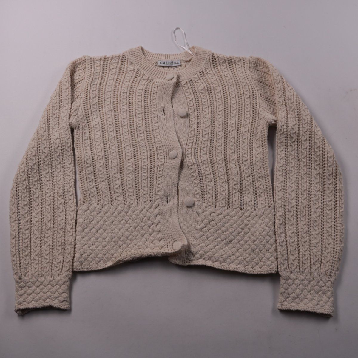 Вязаный кардиган Gallery в цвете ivory с фактурным узором и застёжкой на пуговицы. Подойдёт для повседневных образов в прохладную погоду, можно носить как второй слой поверх топа или платья. Удобен тем, что трикотаж хорошо тянется и не сковывает движения.
