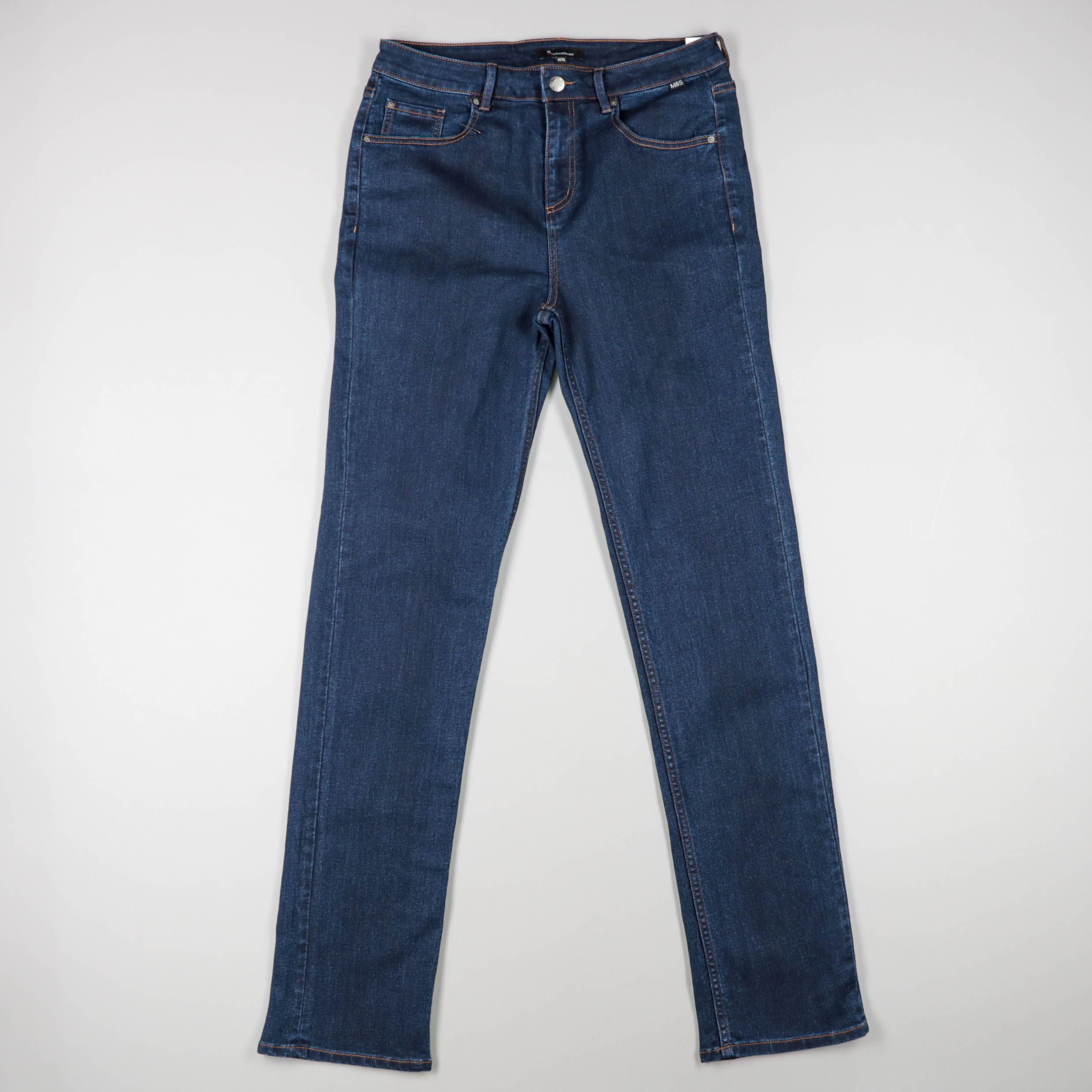 Женские джинсы из денима классического синего цвета, прямой посадки. Подойдут для повседневных образов с футболками, рубашками и свитерами. Плотный материал хорошо держит форму и носится долго.