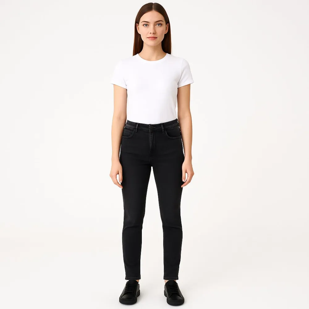 Женские джинсы Marks & Spencer The Carrie Skinny в чёрном цвете, модель скинни с посадкой по талии. Подойдут для повседневных образов и офиса с базовыми футболками, рубашками и жакетами. Эластичная ткань хорошо тянется и комфортно садится по фигуре.