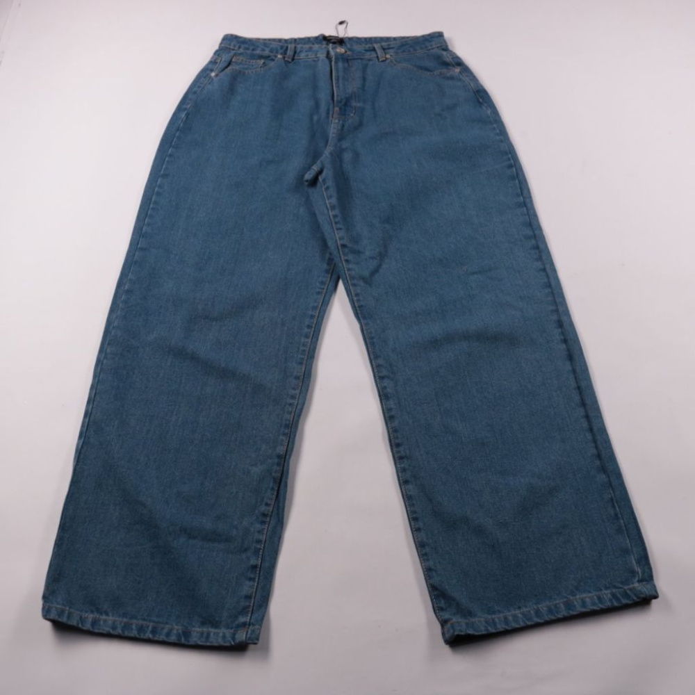 Женские джинсы Boohoo из плотного хлопкового денима синего цвета, с высокой посадкой и широкими штанинами. Подойдут для повседневных образов с кроссовками или ботинками в любое время года. Плотная ткань хорошо держит форму и комфортна в носке.