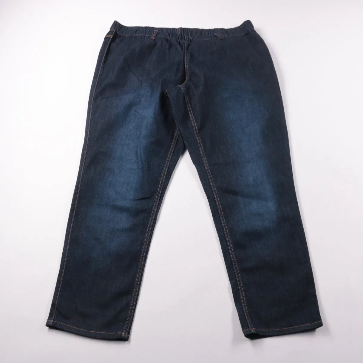 Женские джинсы Ulla Popken из тёмно-синего денима с эластичным поясом. Подойдут для повседневной носки в любое время года, хорошо сочетаются с базовыми футболками и свитерами. Эластичная ткань слегка тянется и обеспечивает комфортную посадку.