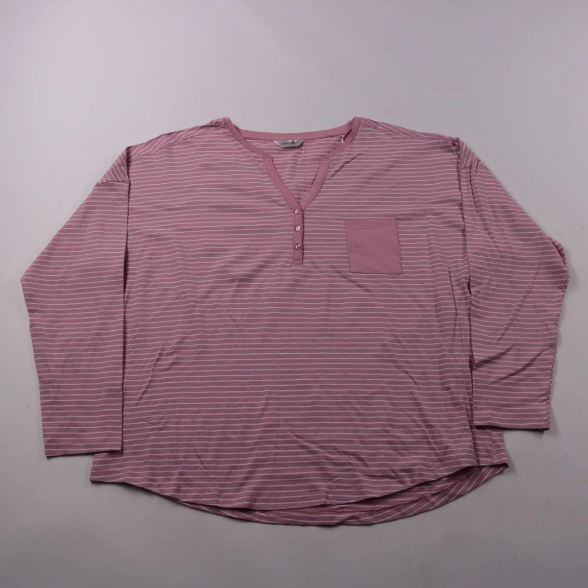 Пижамный лонгслив Dunnessleep в розовую полоску, с длинным рукавом, планкой на пуговицах и нагрудным карманом. Подойдёт для сна и дома в любое время года. Натуральный хлопок хорошо дышит и приятен к телу.