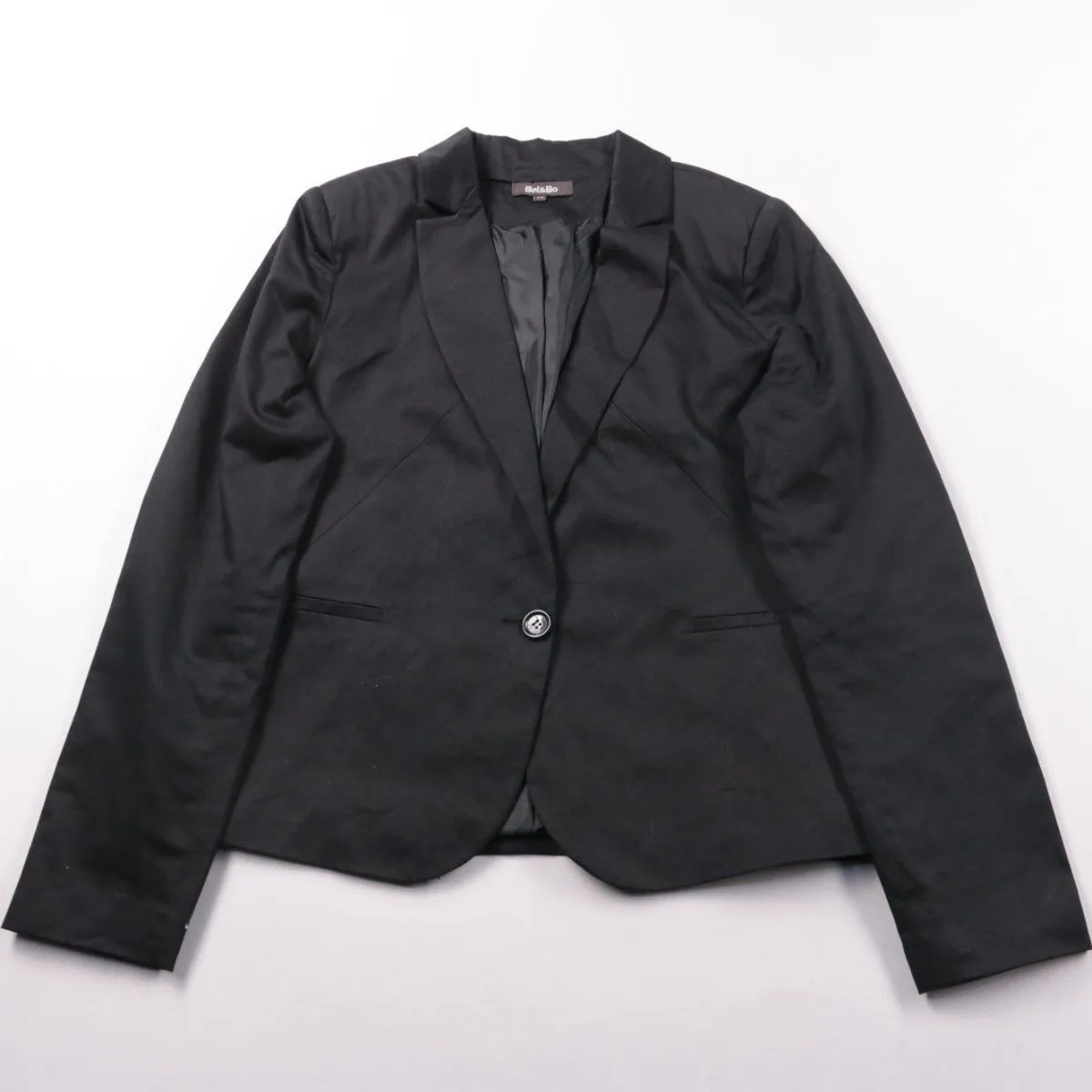 Женский приталенный пиджак Bel&Bo в классическом чёрном цвете, на одной пуговице и с лацканами. Подойдёт для офиса, деловых встреч и вечерних образов с платьем или брюками. Ткань с добавлением эластана комфортно садится по фигуре и меньше мнётся.