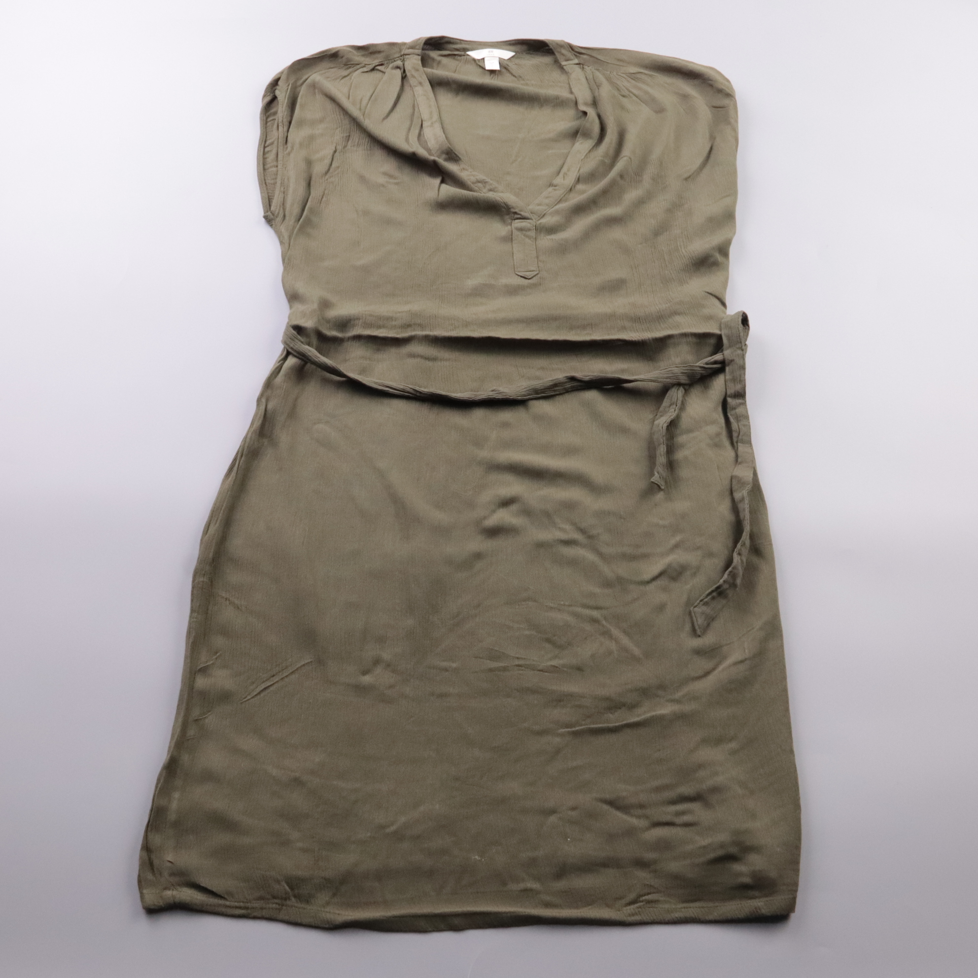 Повседневное платье H&M из 100% вискозы, цвет хаки, с V-образным вырезом и поясом на талии. Подойдёт для прогулок и повседневных дел в тёплую погоду, легко сочетается с кедами или сандалиями. Мягкая вискоза хорошо дышит и комфортна в жару.
