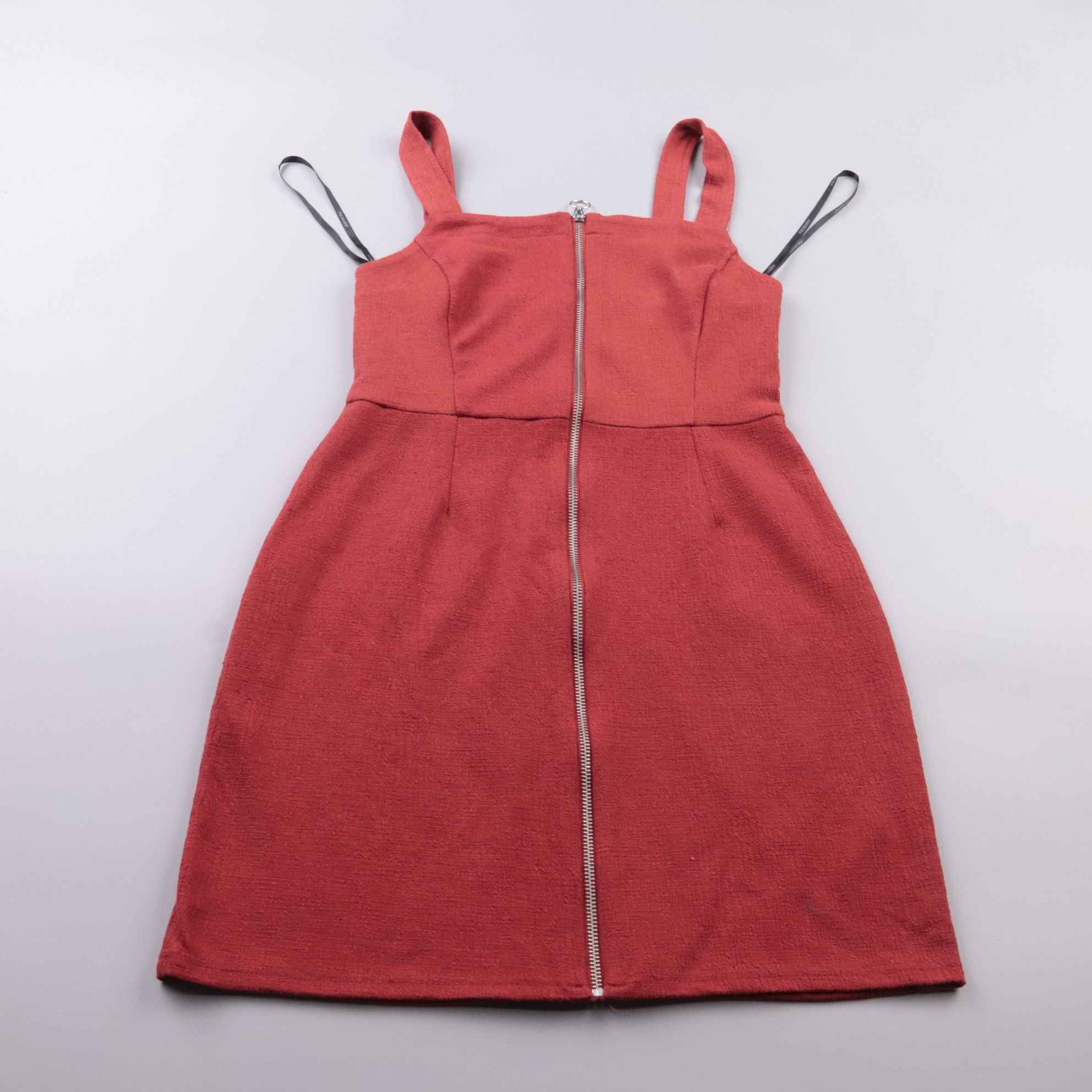 Повседневное платье Primark кирпично-красного цвета, приталенного кроя, на широких бретелях с декоративной молнией спереди. Подойдёт для прогулок и встреч, легко сочетается с кедами или босоножками. Плотная ткань держит форму и комфортно садится за счё...