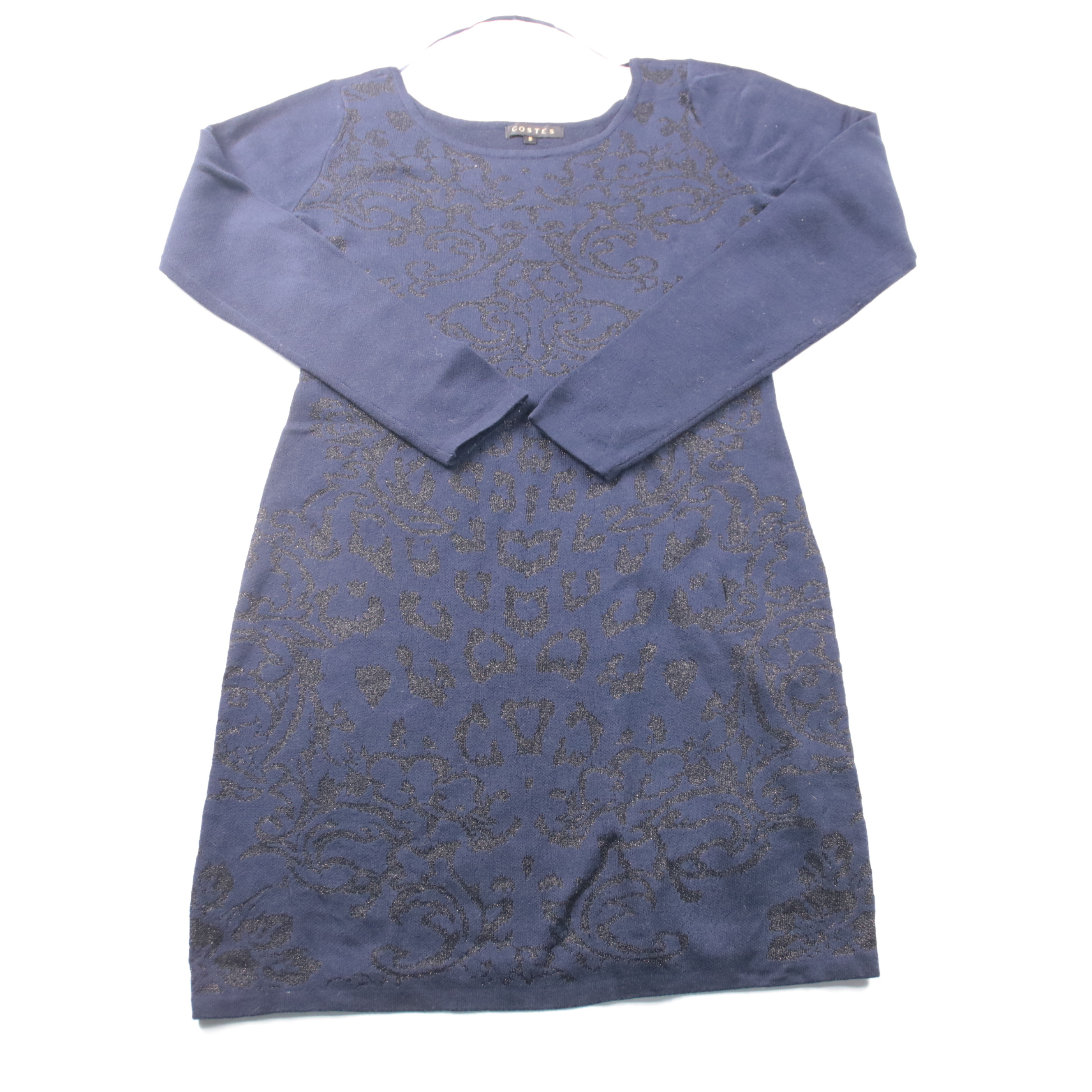 Женское платье Costes с длинным рукавом и жаккардовым узором с лёгким блеском. Подойдёт для повседневных образов и офисных комплектов в прохладную погоду. Трикотажная ткань тянется и комфортно садится по фигуре.