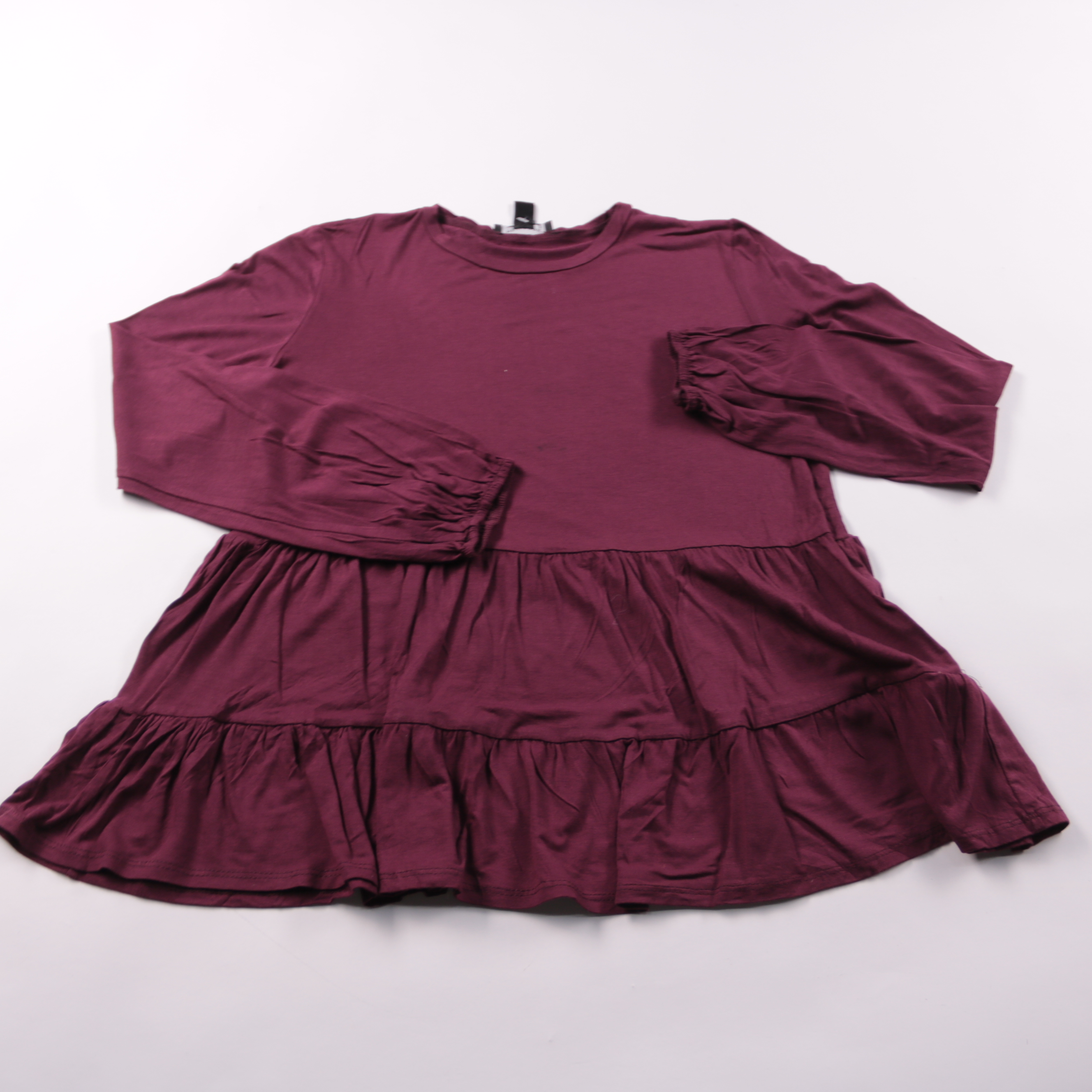 Повседневное платье New Look бордового цвета с ярусной юбкой и рукавами 3/4 на мягких манжетах. Подойдёт для повседневных образов и на прохладную погоду с кардиганом или курткой. Трикотажная вискоза приятна к телу и хорошо драпируется.