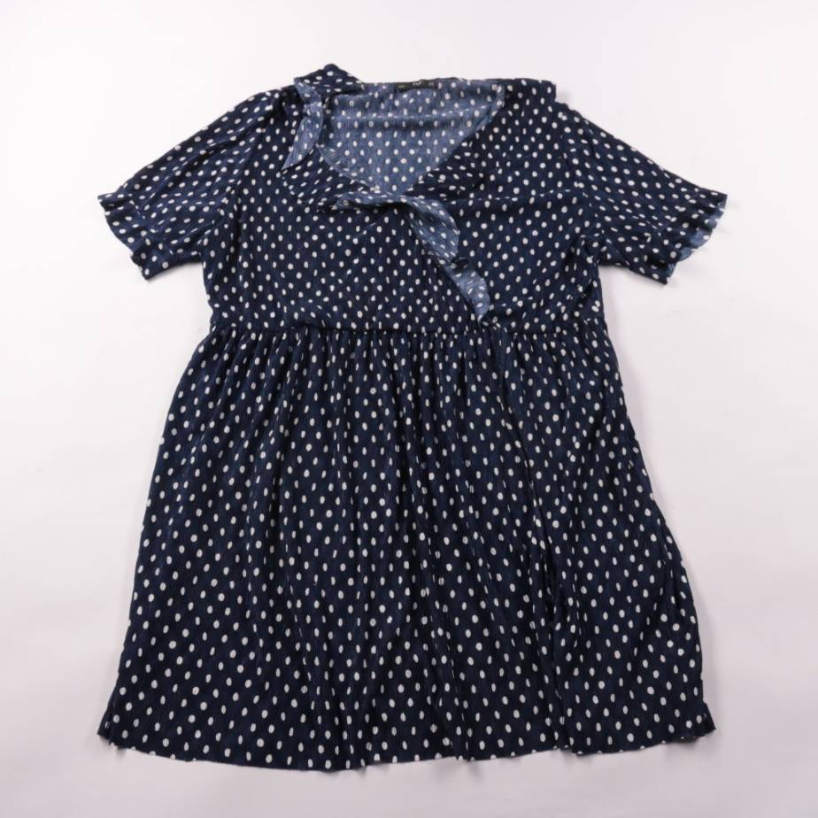 Повседневное платье F&F тёмно-синего цвета в белый горох, с короткими рукавами и завязкой у выреза. Подойдёт для прогулок и на каждый день благодаря свободному крою и лёгкой ткани. Практичное: не стесняет движений и удобно комбинируется с обувью на пло...