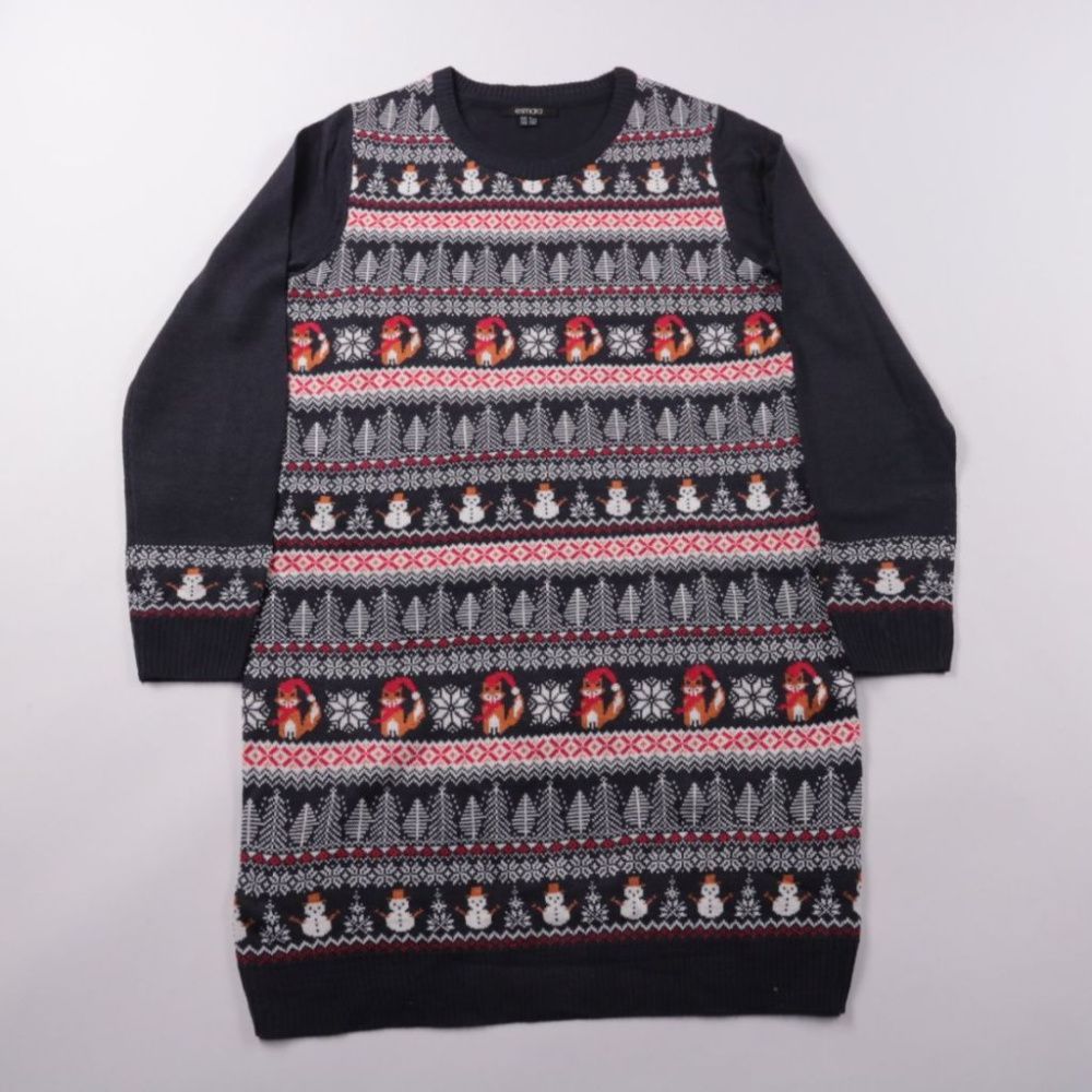 Вязаное платье Esmara тёмно-синего цвета с зимним жаккардовым узором (ёлки, снеговики и лисы). Подойдёт для повседневных зимних образов и новогодних встреч с ботинками или сапогами. Практично тем, что мягкий акрил хорошо держит форму и быстро сохнет по...