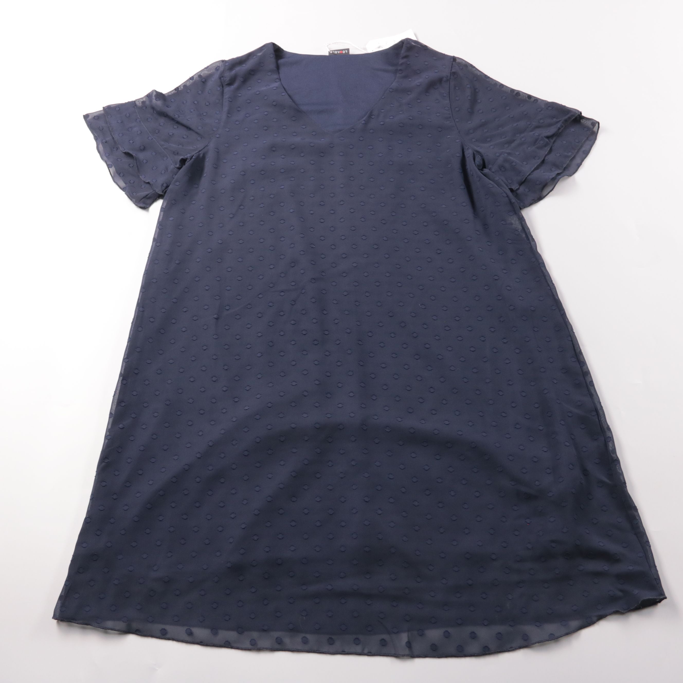 Повседневное платье Lovable тёмно-синего цвета с V-образным вырезом и короткими рукавами с лёгкой сборкой. Ткань с фактурным рисунком в горошек подойдёт для летних прогулок и офиса с нестрогим дресс-кодом. Практично тем, что 100% полиэстер меньше мнётс...