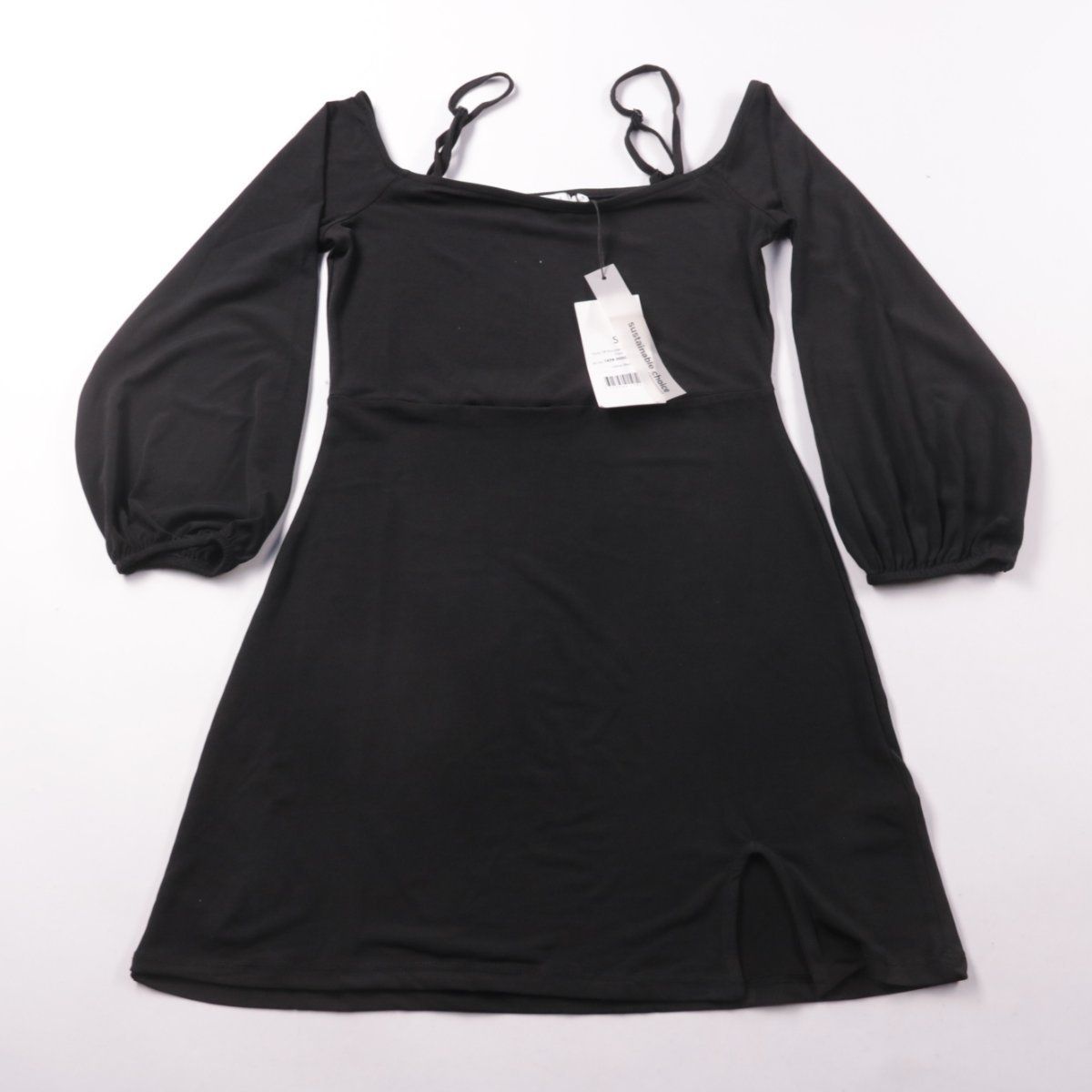 Черное платье Pamela x NAKD с квадратным вырезом, тонкими бретелями и объемными рукавами 3/4. Подойдет для повседневных образов и вечерних выходов с обувью на каблуке или грубыми ботинками. Эластичная ткань хорошо тянется и комфортно садится по фигуре.