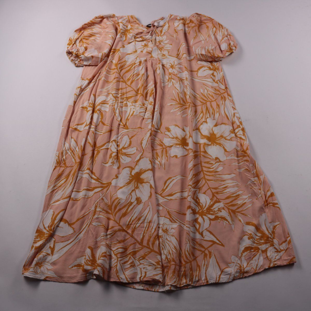 Повседневное платье Petal + Pup свободного кроя с короткими рукавами-фонариками и завязками у выреза. Подойдёт для прогулок и отпуска в тёплую погоду. Лёгкая ткань из вискозы хорошо дышит и комфортна в носке.