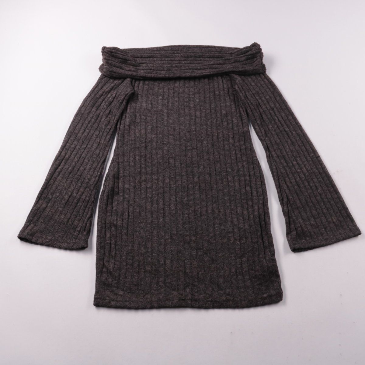 Повседневное платье SHEIN из трикотажа в рубчик с широким отворотом-горловиной и длинными рукавами. Подойдёт для прохладной погоды и образов на каждый день, материал тянется и комфортно садится по фигуре.