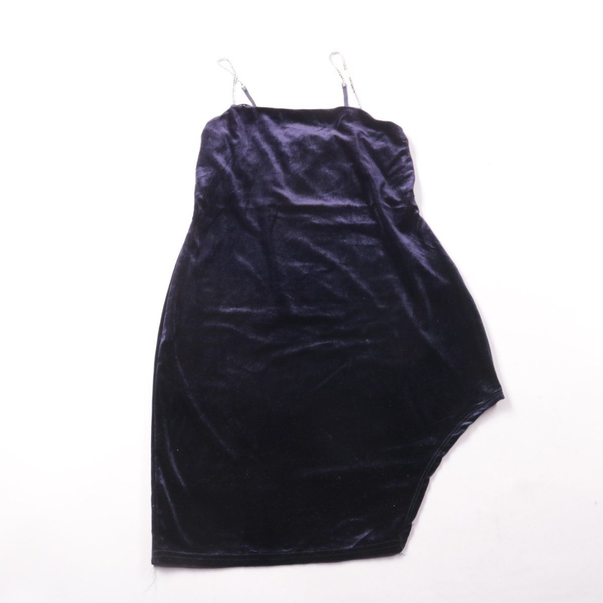 Вечернее бархатистое платье Quiz на тонких бретелях, облегающего силуэта. Подойдёт для вечеринки или выхода в клуб, хорошо смотрится с каблуками и жакетом. Ткань с эластаном немного тянется и комфортно садится по фигуре.