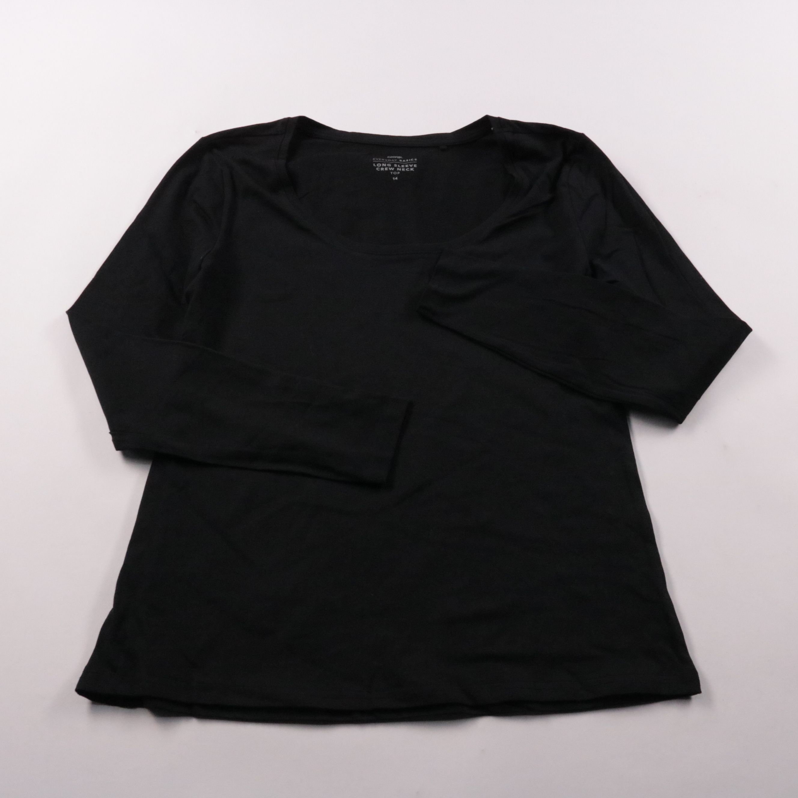 Черная блузка George с длинным рукавом и округлым вырезом, лаконичная и без лишнего декора. Подойдет для офиса и повседневных образов, хорошо сочетается с джинсами, брюками и юбками. Практичный плюс — универсальный цвет и простой крой, который легко ко...