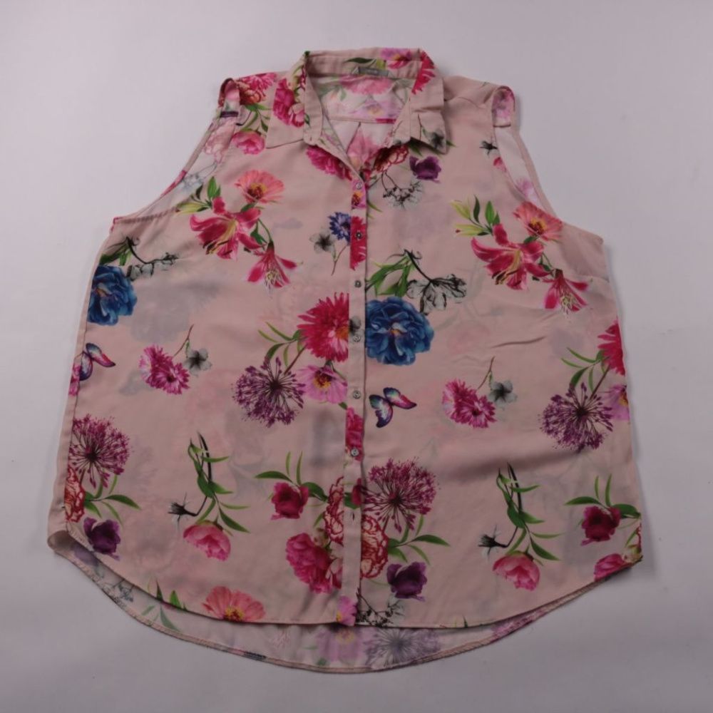 Блузка George без рукавов в нежно-розовом цвете с ярким цветочным принтом и отложным воротником на пуговицах. Подойдёт для лета и тёплой погоды, хорошо смотрится с джинсами, брюками или юбкой. Лёгкий полиэстер быстро сохнет и почти не мнётся, удобно дл...