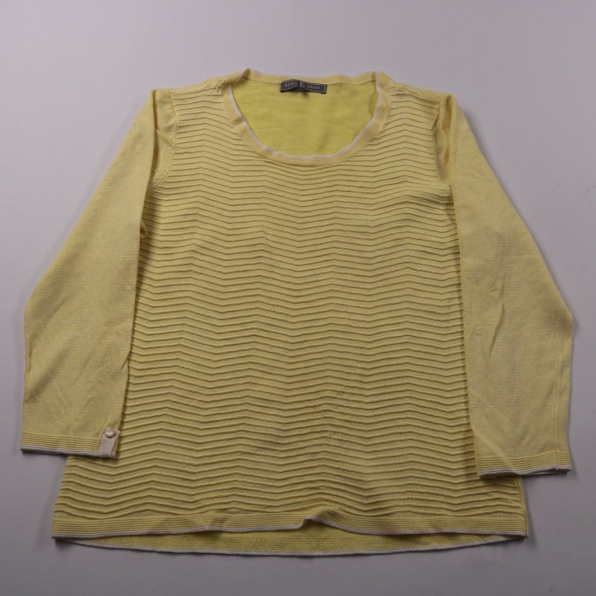 Женская блузка Jessica Graaf светло-жёлтого цвета с фактурным полосатым передом и круглым вырезом. Подойдёт для повседневных образов и офиса, легко сочетается с джинсами или юбкой. Вискоза в составе приятна к телу и хорошо дышит.
