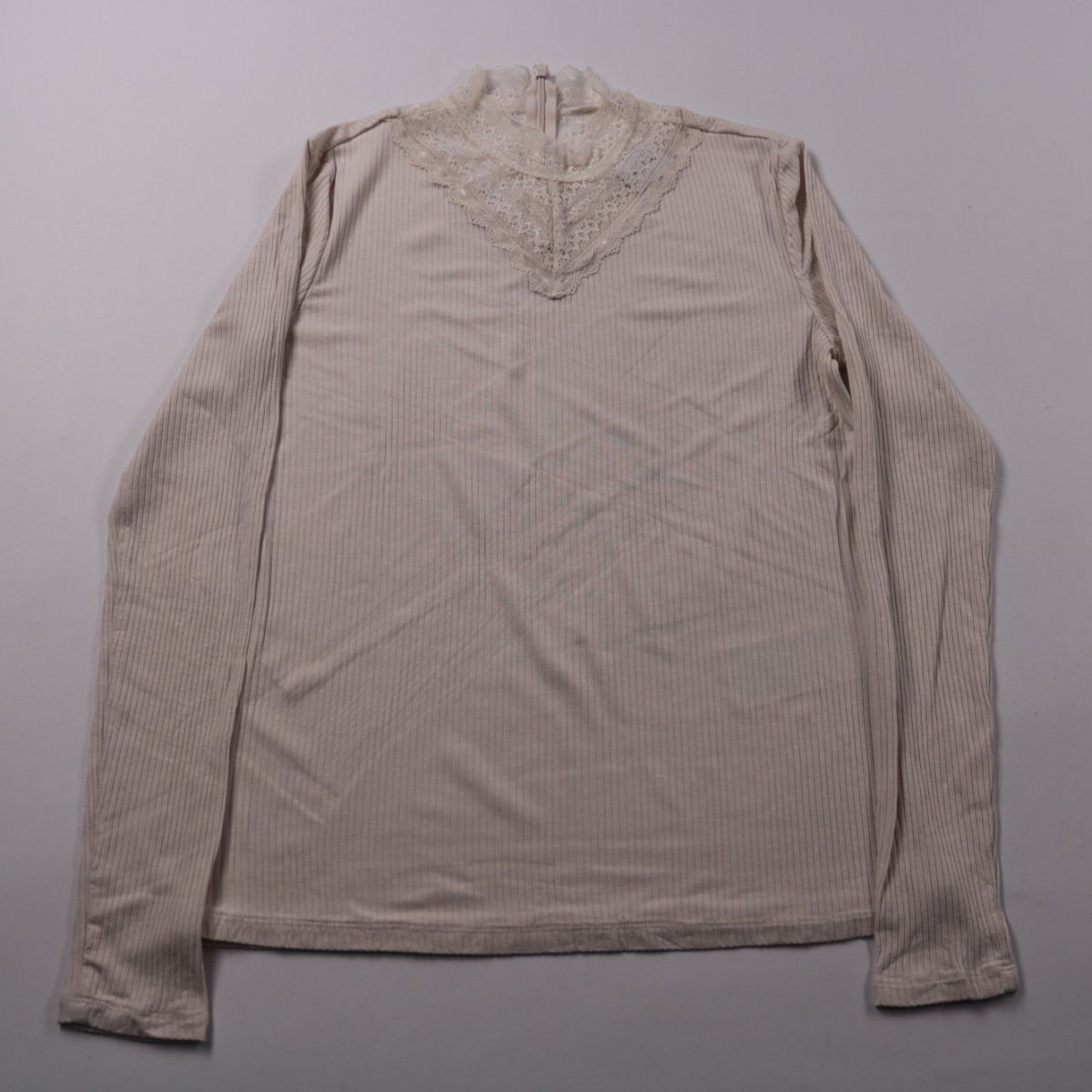 Женская блузка VILA в бежевом цвете из фактурного трикотажа в рубчик, с кружевной отделкой и воротником-стойкой. Подойдёт для повседневных образов и офисного стиля под жакет или кардиган. Материал эластичный, хорошо тянется и комфортно садится по фигуре.