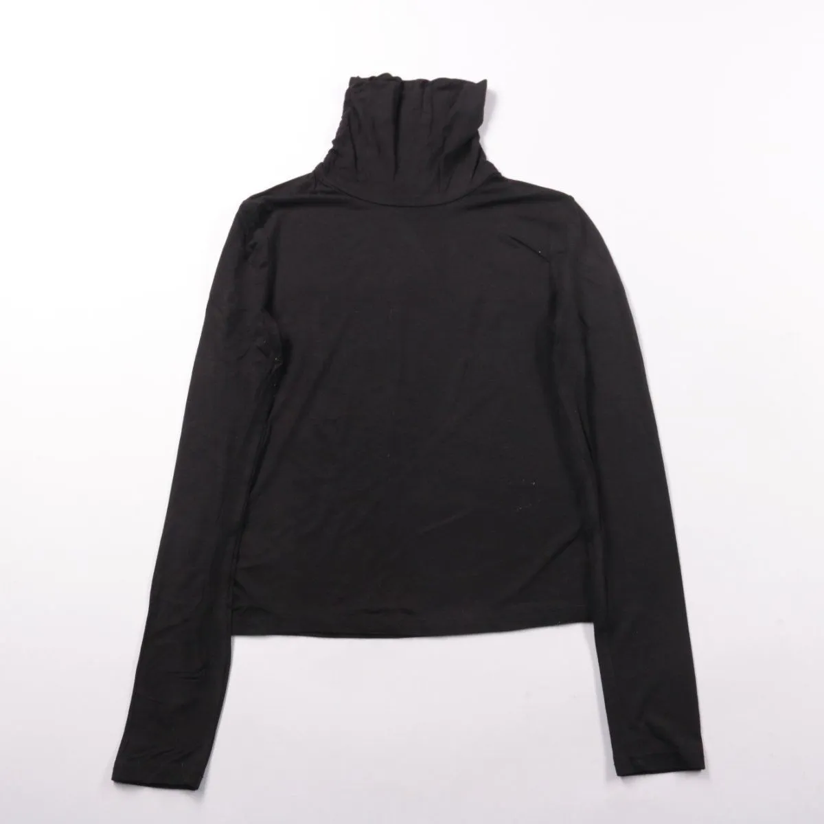 Чёрная блузка Shein с высоким воротником и длинными рукавами, ткань эластичная и мягко облегает. Подойдёт для повседневных образов, офиса или как базовый слой под жакет/кардиган в прохладную погоду. Материал тянется и не сковывает движения.