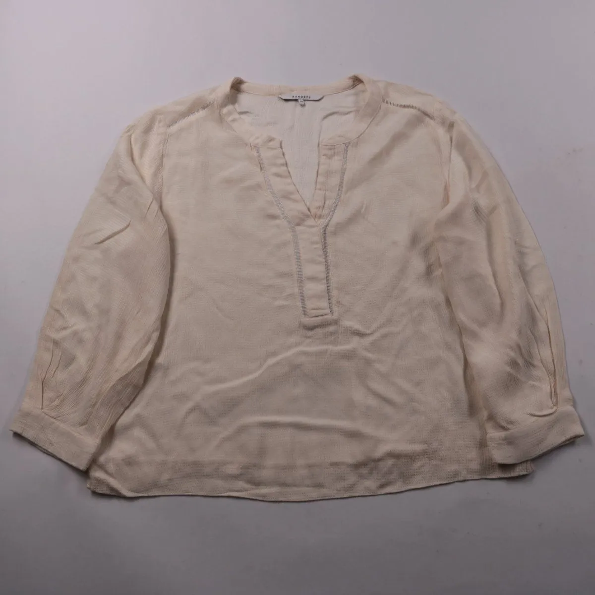 Женская блузка Xandres светло-бежевого цвета из 100% вискозы, с V-образным вырезом и планкой. Подойдёт для повседневных и офисных образов в тёплое время года или как слой под жакет. Лёгкая ткань хорошо дышит и комфортна в носке.