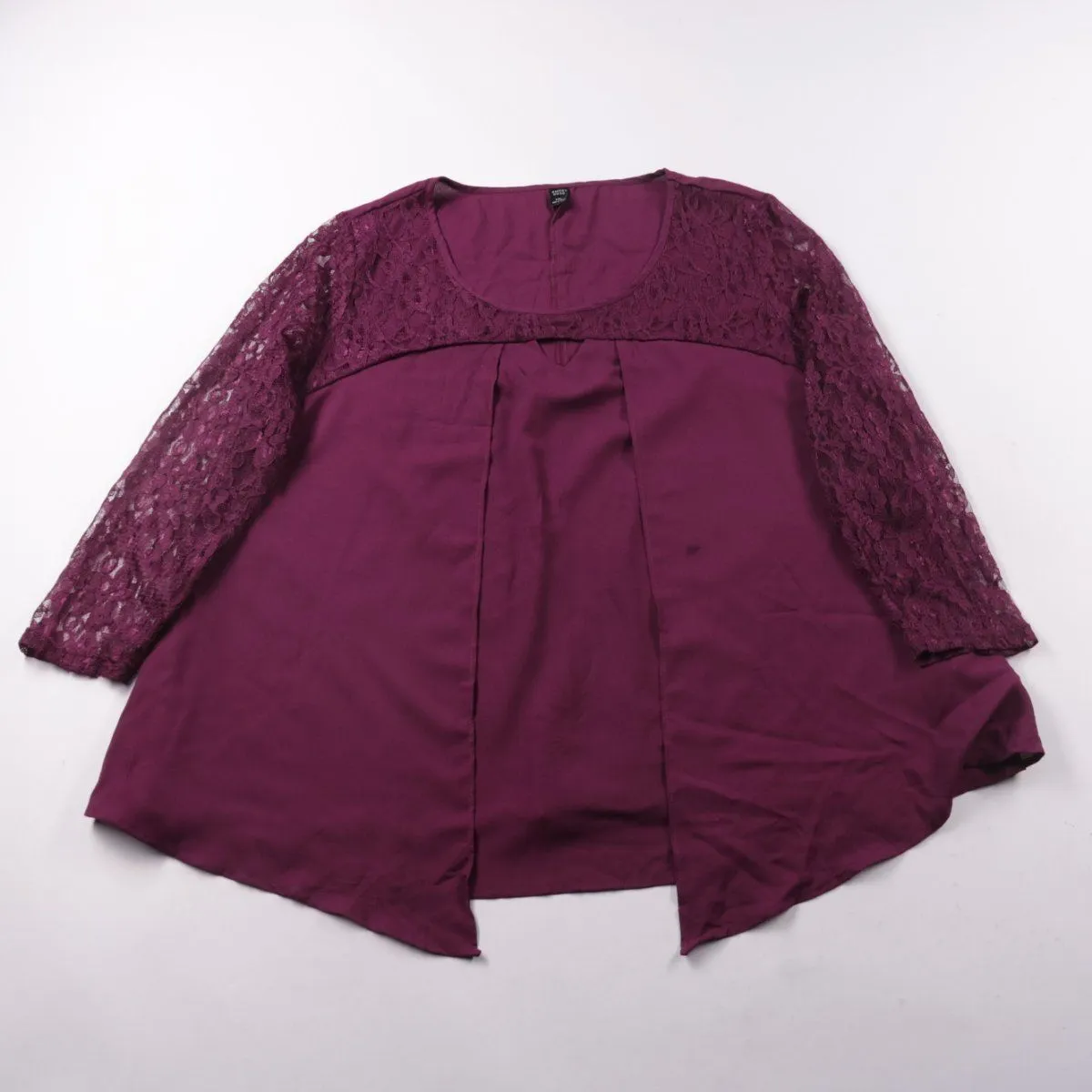 Женская блузка Emmery Rose бордового оттенка с ажурными рукавами и вставкой из кружева по линии плеч. Подойдёт для повседневных образов и более нарядных выходов благодаря свободному силуэту и мягкой драпировке спереди. Практичный плюс — ткань из полиэстера легко стирается и быстро сохнет.