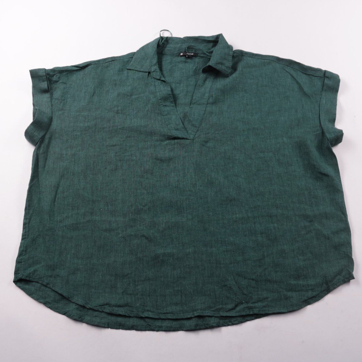 Льняная блузка O Woman свободного кроя с отложным воротником и V-образным вырезом. Подойдёт для тёплой погоды и повседневных образов с джинсами или шортами. Натуральный лён хорошо дышит и комфортен в жару.