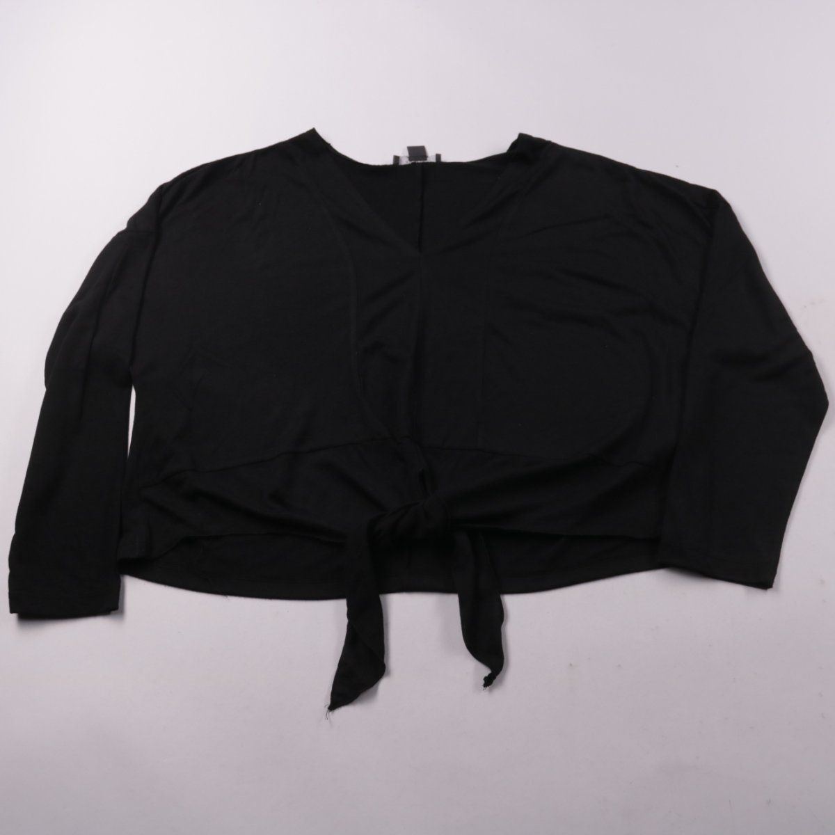 Черная женская блузка Primark укороченной длины с завязками спереди и длинными рукавами. Подойдет для повседневных образов и на выход, хорошо сочетается с брюками и юбками с высокой посадкой. Легкая ткань почти не мнется и быстро сохнет.