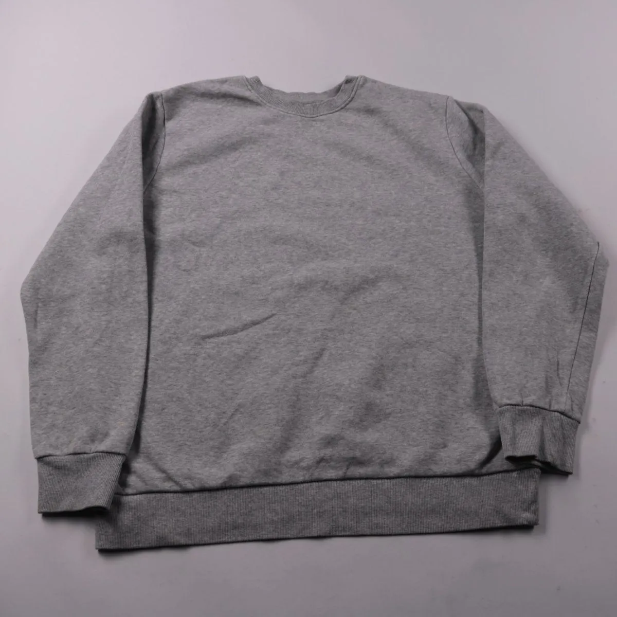 Серый свитшот F&F без принтов, с круглым вырезом и манжетами. Подойдёт для повседневной носки и прогулок в прохладную погоду благодаря мягкой утеплённой изнанке. Практичен тем, что легко сочетается с джинсами и спортивными брюками.