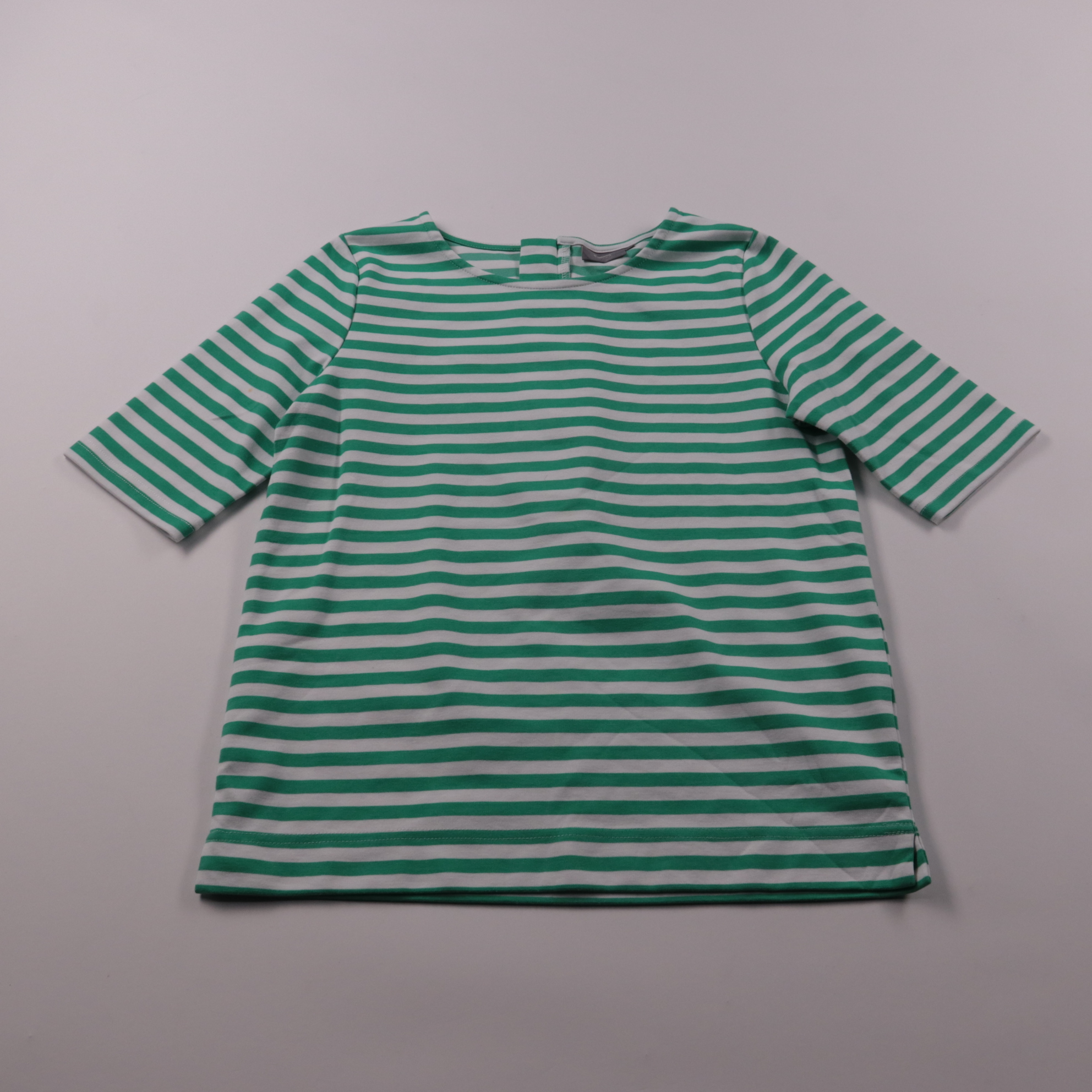Полосатая футболка B.Young в зелёно-белую полоску, рукав до локтя и аккуратная горловина. Подойдёт для повседневных образов и офиса с мягким дресс-кодом, легко сочетается с джинсами и юбками. Трикотаж эластичный и почти не мнётся, удобно носить и брать...