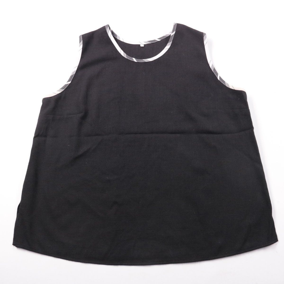 Женский топ без рукавов с круглым вырезом и контрастной окантовкой. Подойдёт для офиса и повседневных образов, легко сочетается с брюками и юбками. Ткань со льном в составе хорошо дышит и комфортна в носке.