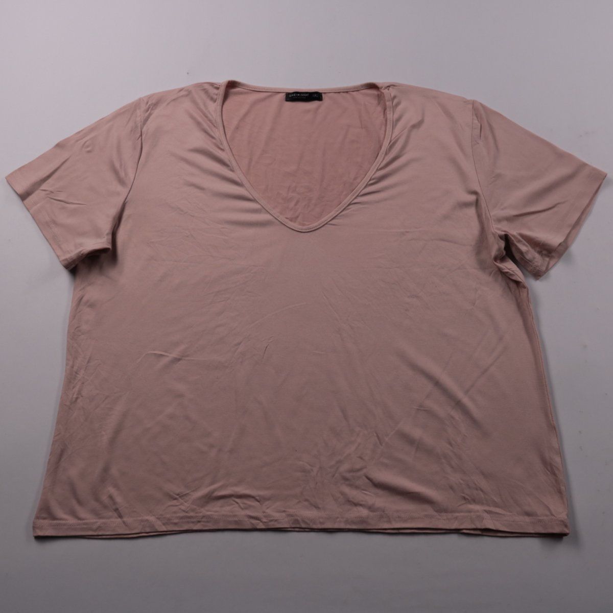Женская футболка Shein Curve в нежно-розовом цвете с V-образным вырезом и коротким рукавом. Подойдёт для повседневных образов и как базовый слой под жакет или кардиган. Тянущаяся ткань комфортно садится по фигуре и не сковывает движения.