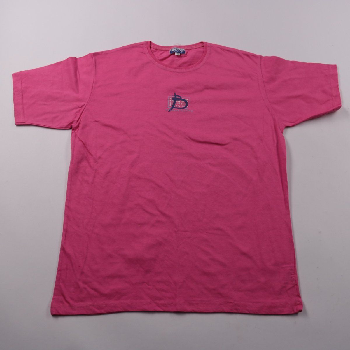 Женская футболка Flower girl ярко-розового цвета с небольшим принтом на груди. Подойдёт для повседневной носки и летних прогулок, легко сочетается с джинсами и шортами. Натуральный хлопок хорошо пропускает воздух и комфортен в течение дня.