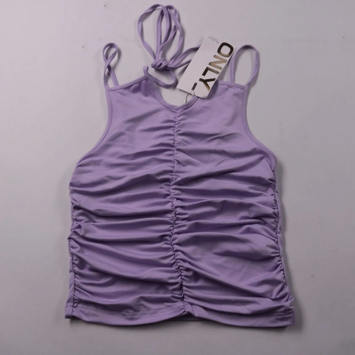 Женский топ Only в цвете Purple Rose с тонкими бретелями и завязками. Модель со сборкой (драпировкой) по центру хорошо садится по фигуре и подойдёт для лета, отпуска и повседневных образов. Эластичный материал комфортно тянется и не сковывает движения.
