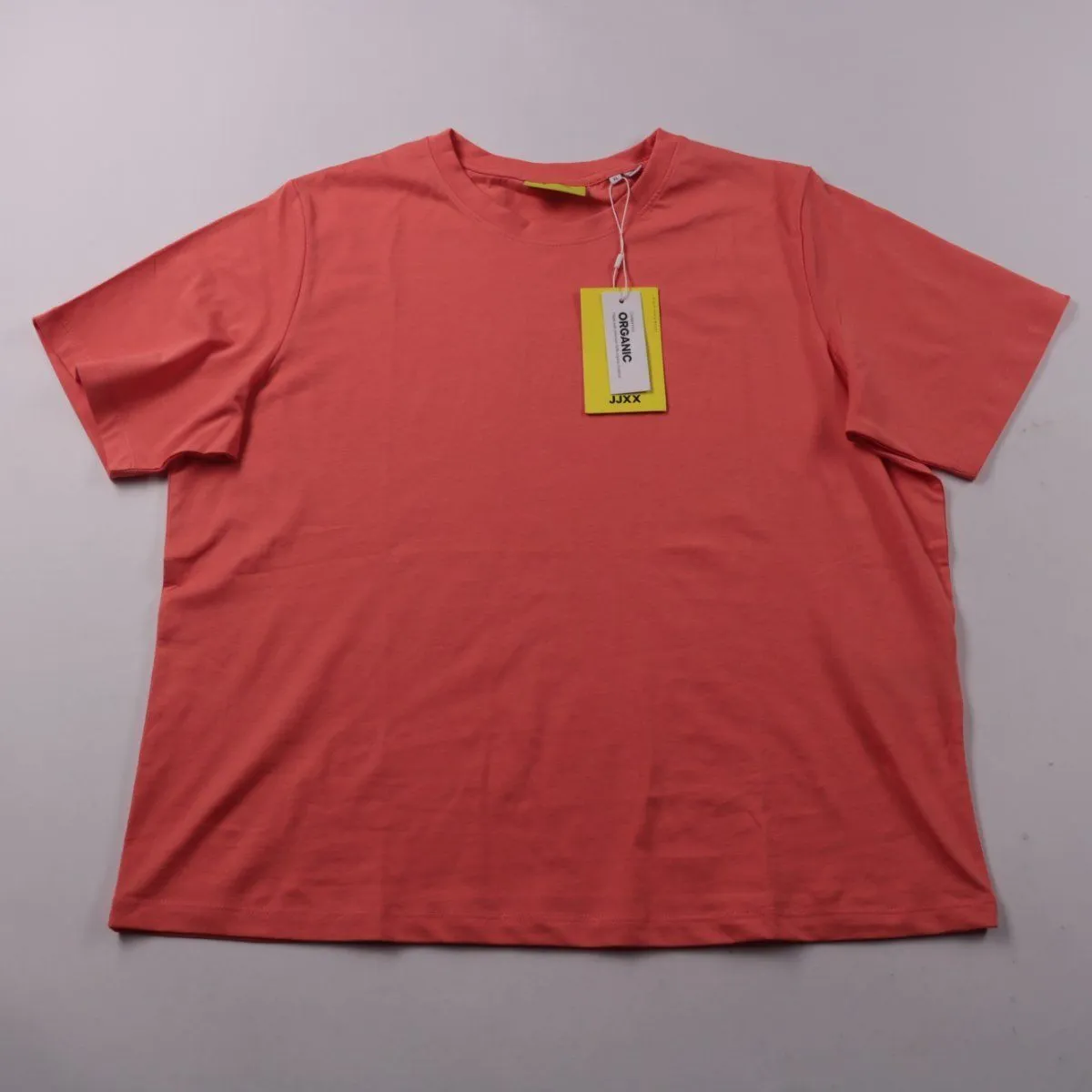 Женская футболка JJXX в оттенке Peach Echo (персиково-коралловый), прямого кроя с круглым вырезом и коротким рукавом. Подойдёт для повседневных образов, прогулок и как базовый слой под жакет или кардиган. Практична в носке: натуральный хлопок хорошо дышит и легко стирается.