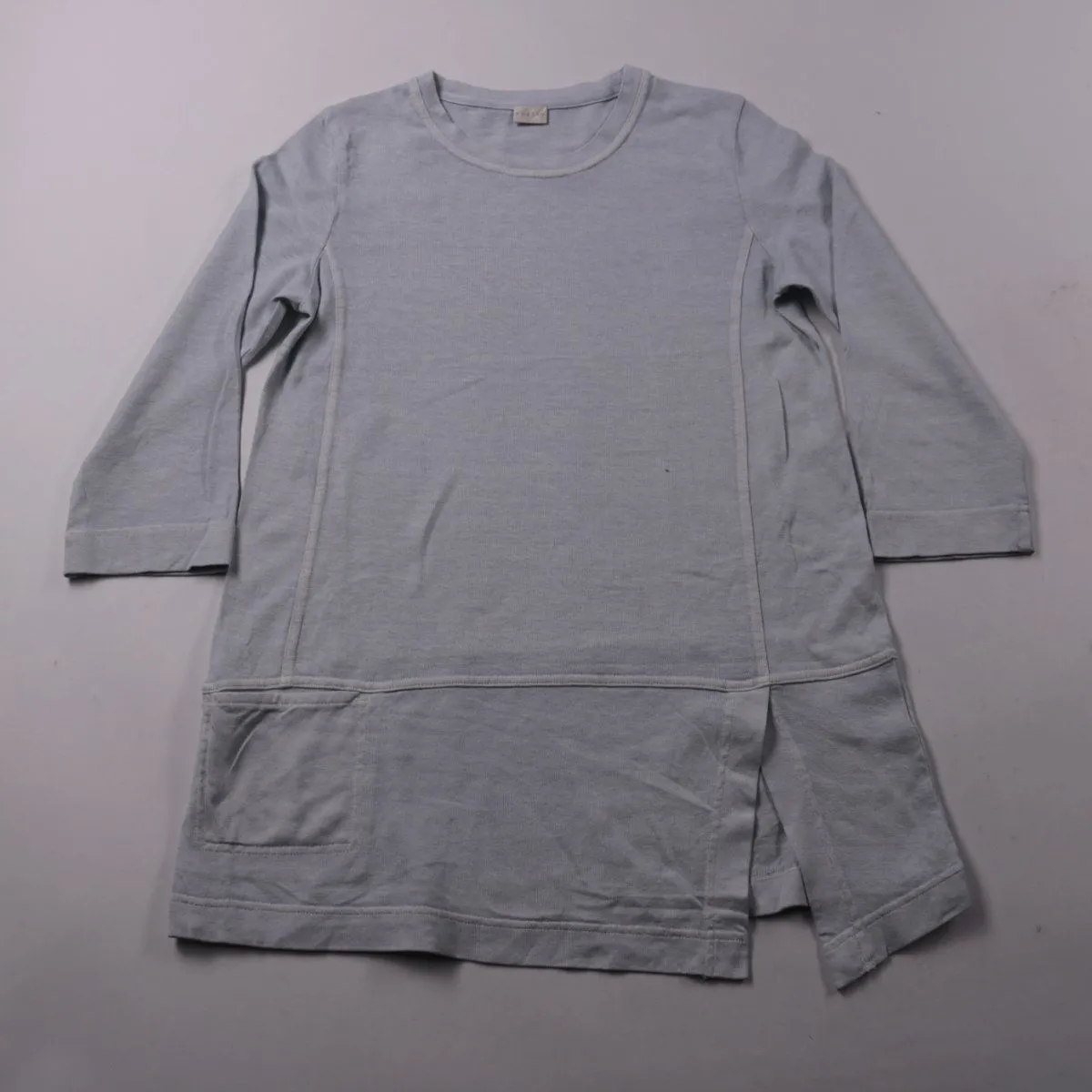 Женский лонгслив Poetry светло-серого цвета, удлинённого кроя. Модель с круглым вырезом, длинным рукавом и декоративными швами, подходит для повседневных образов. Натуральный состав с хлопком делает вещь комфортной в носке.
