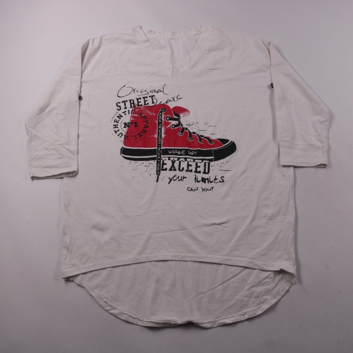 Женский белый лонгслив с V-образным вырезом и принтом. Подойдёт для повседневных образов и как базовый слой в прохладную погоду. Ткань с добавлением эластана, поэтому изделие немного тянется и комфортно садится по фигуре.