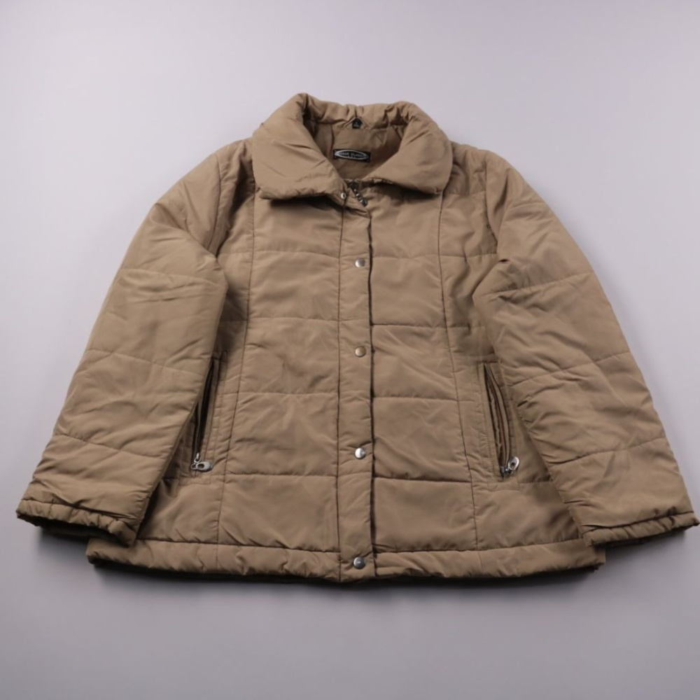 Стёганая демисезонная куртка Cecilia Classics бежевого цвета с объёмным воротником и застёжкой на кнопки. Подойдёт для прохладной осени и весны, удобно носить на каждый день благодаря прямому крою и боковым карманам на молнии.