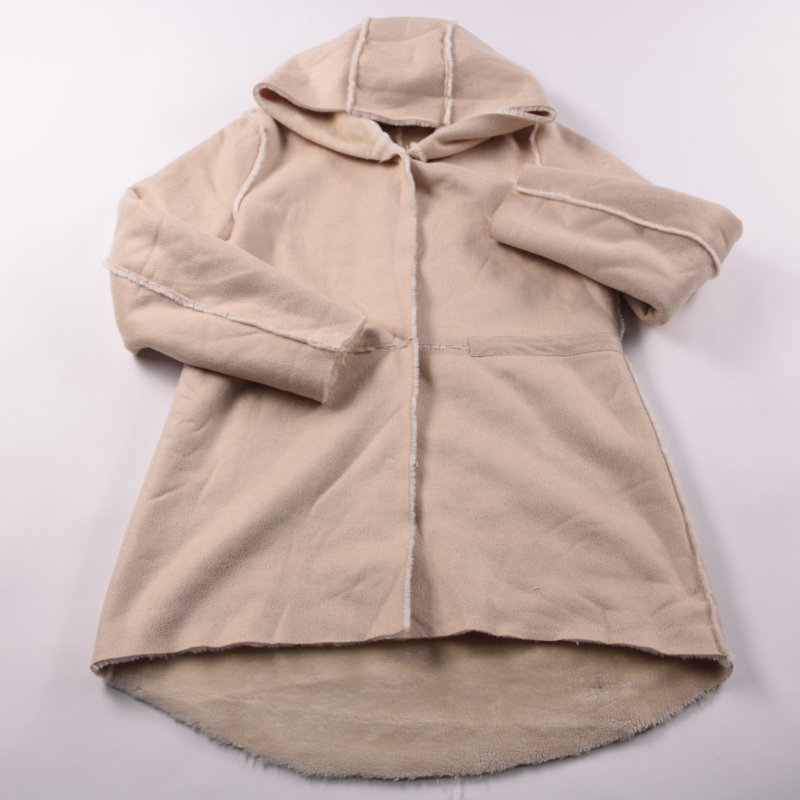 Женская дублёнка Rowen Avenue бежевого цвета с мягкой фактурой под овчину и капюшоном. Подойдёт для повседневных прогулок и поездок в прохладную погоду, легко сочетается с джинсами и ботинками. Материал неприхотлив в уходе и быстро сохнет.
