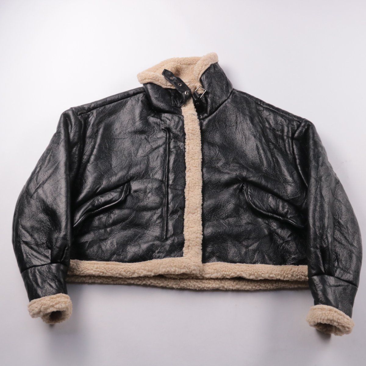 Женская укороченная дублёнка Princess Polly из экокожи с отделкой под овчину и высоким воротником на ремешке. Подойдёт для зимних прогулок и повседневных городских образов. Тёплая подкладка хорошо защищает от ветра.