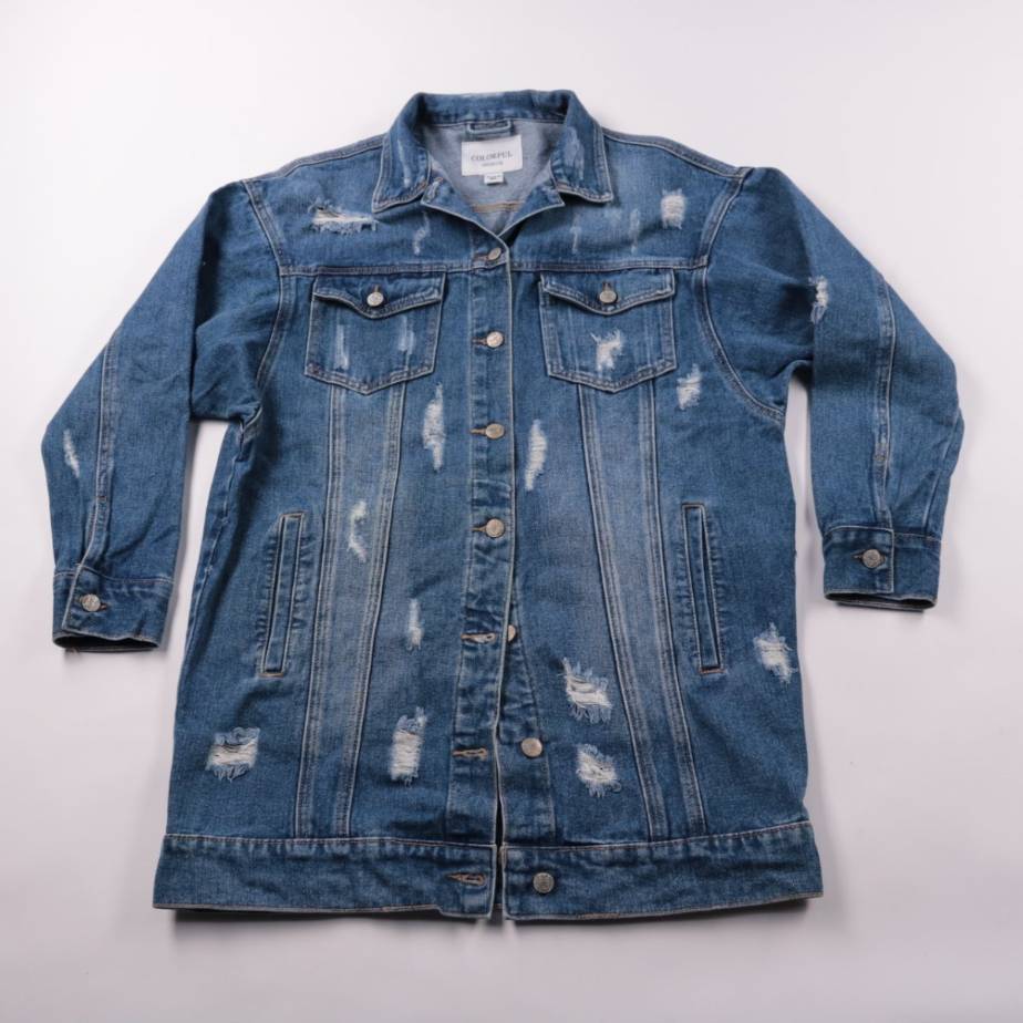 Джинсовая куртка Colorful из плотного денима с эффектом потертостей и декоративными разрывами. Подойдёт для повседневных образов весной и осенью, хорошо сочетается с джинсами и платьями. Практичный вариант на каждый день: удобные карманы и застёжка на ...