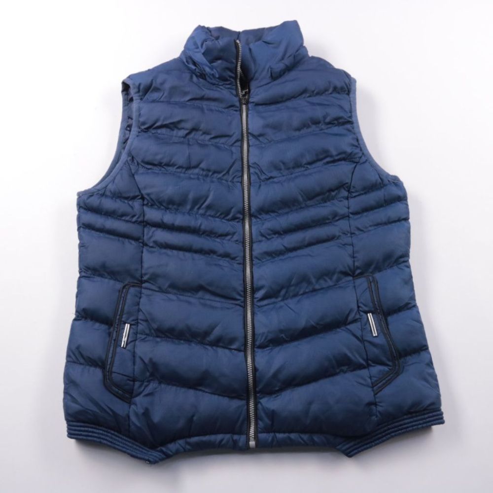 Стёганый утеплённый жилет на молнии, без ярко читаемого бренда. Подойдёт для прохладной погоды поверх худи или свитера, удобен для прогулок и поездок. Плотная стёжка сохраняет тепло, а карманы на молнии помогают надёжно держать мелочи.