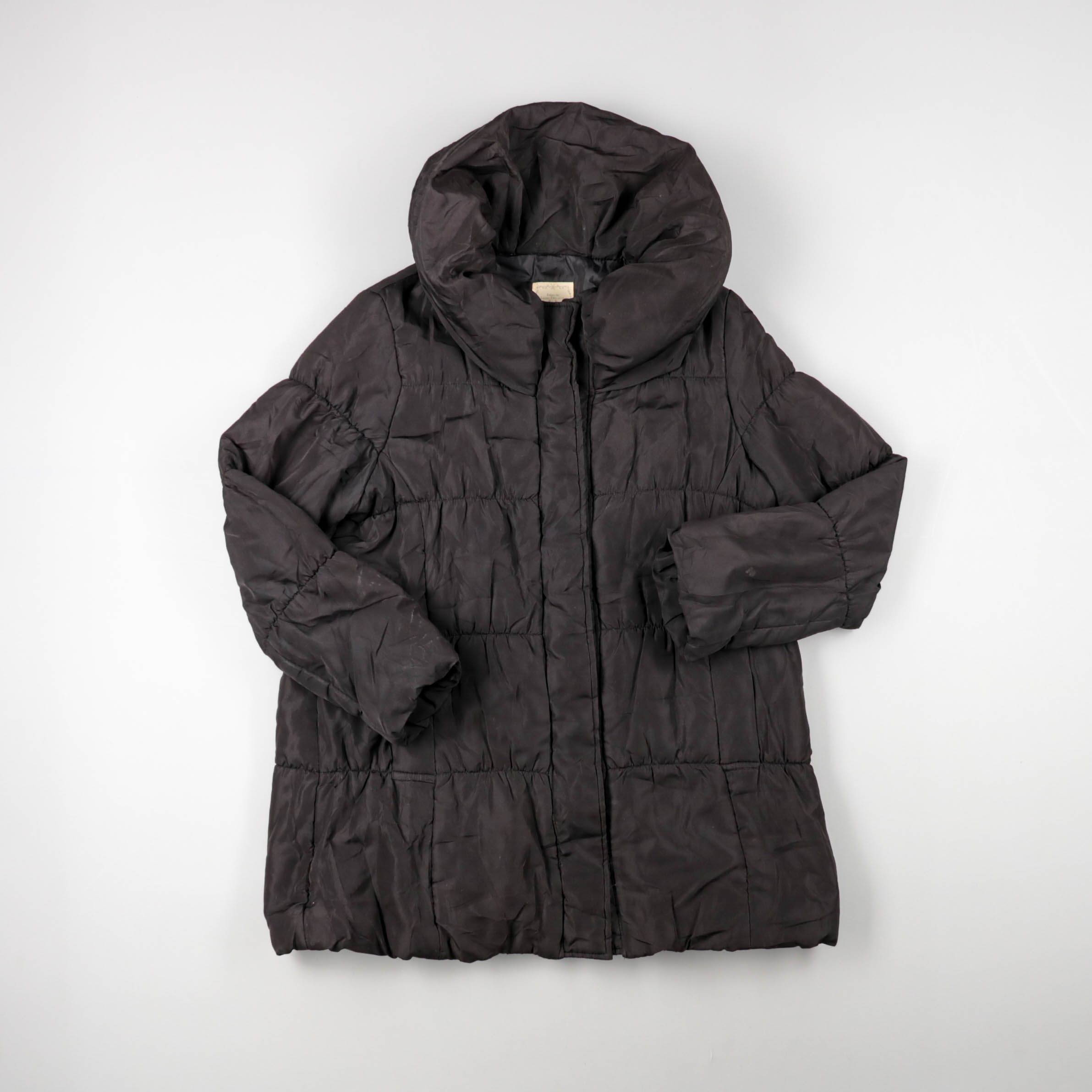 Женский пуховик в чёрном цвете с объёмным воротником-капюшоном и стёжкой. Подойдёт для зимних прогулок и повседневной носки в городе, хорошо сочетается с джинсами и тёплыми ботинками. Плотный утеплитель и высокий воротник помогают сохранять тепло и защ...