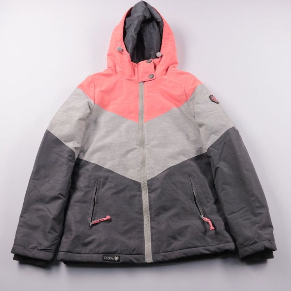Зимняя куртка Blind Date в геометрическом колор-блоке с капюшоном и молнией, размер XS. Подойдёт для прогулок и повседневной носки в холодную погоду. Практичный плюс — тёплая синтетическая подкладка и удобные карманы на молнии.